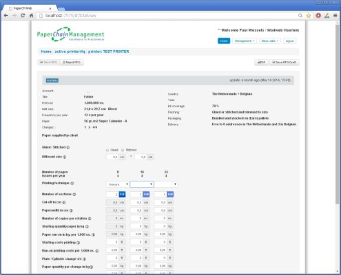 Het indienen van offertes door drukkerijen, het verzamelen en ranken van de data door PCM en het uitbrengen van een advies aan de retailer werd voorheen georganiseerd met een groot aantal spreadsheets in Excel. Eigenaar van PCM, drs. ing. Piet Jorritsma, was daarom op zoek naar één totaaloplossing waarin de volledige workflow kon worden samengebracht.