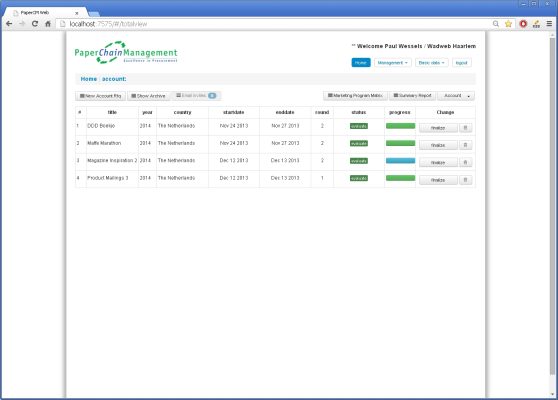 Het Haarlemse bedrijf PaperChainManagement (PCM) treedt op als intermediair tussen grote retailers en drukkerijen. Voor drukwerkopdrachten van deze retailers wordt een tender uitgezet. Drukkerijen plaatsen hun aanbod, waarna PaperChainManagement de gegevens verzamelt en haar klant een ranking van de beste deals levert.